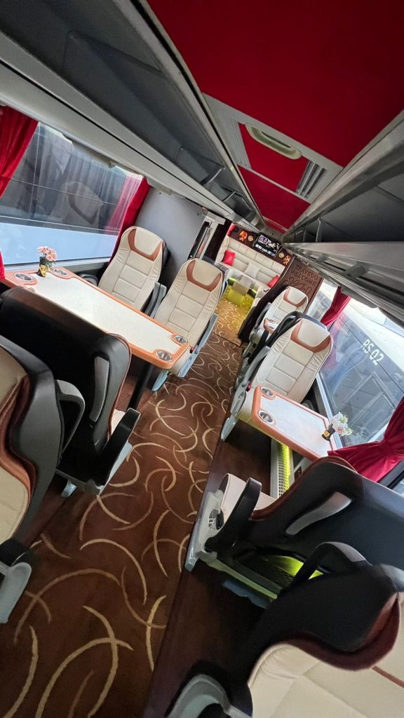 ملكي VIP مع طاولات وجلسة كنب وآلة صنع القهوة وميكروويف، تتسع لما يصل إلى 25 راكباً.